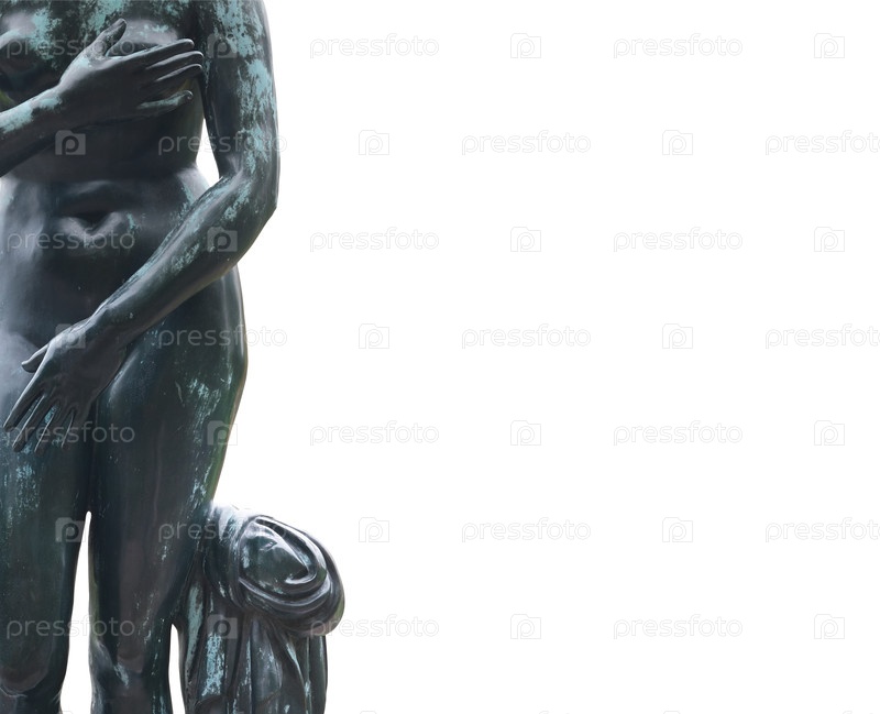 Бронзовая античная статуя "Венера Милосская", изолированная на белом фоне (часть), макеты плакатов