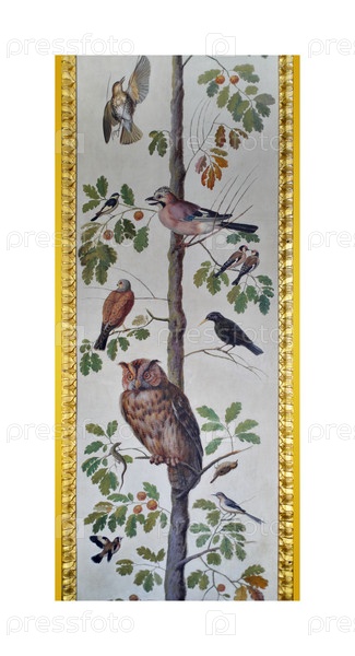 Подробная фреска с птицами, сидящими на дереве из Лоджии Рафаэля