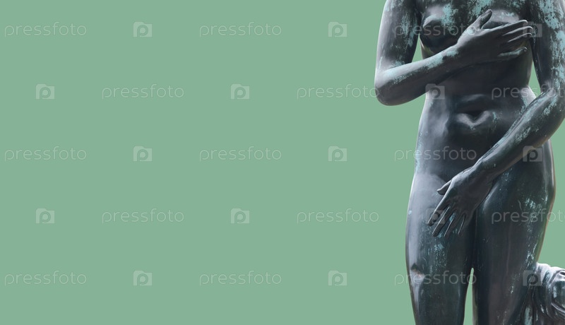 Бронзовая античная статуя "Венера Милая" изолирована на зеленом фоне (часть), макеты плакатов