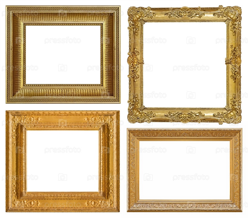 Набор золотых рамок для картин, зеркал или фотографий, изолированных на белом фоне