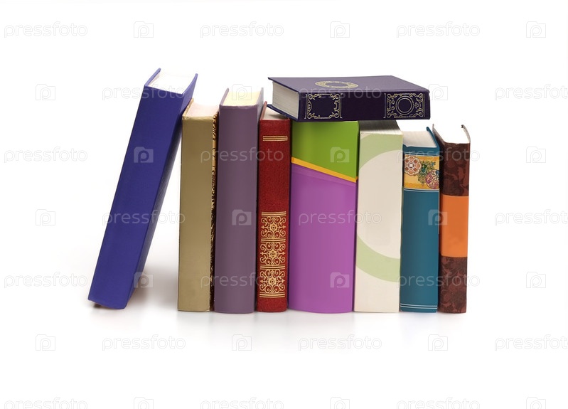 Куча книг в цветных обложках с белыми листами, изолированными на белом фоне