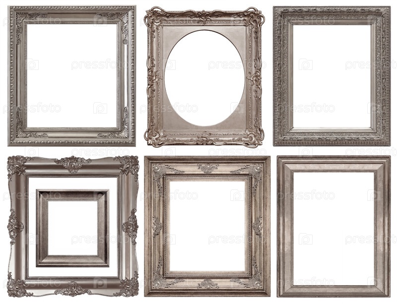 Набор серебряных рамок для картин, зеркал или фотографий изолированный на белом фоне