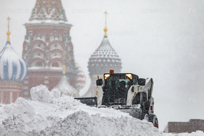Снегоуборочная техника на Красной площади на фоне Собора Василия Блаженного, Москва