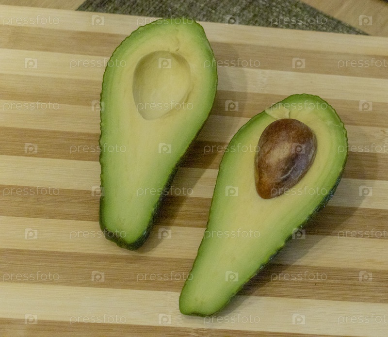 Выстрел авокадо, нарезанного пополам на деревянной доске для резки