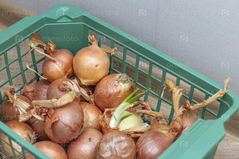 Коричневый лук в пластиковой стойке