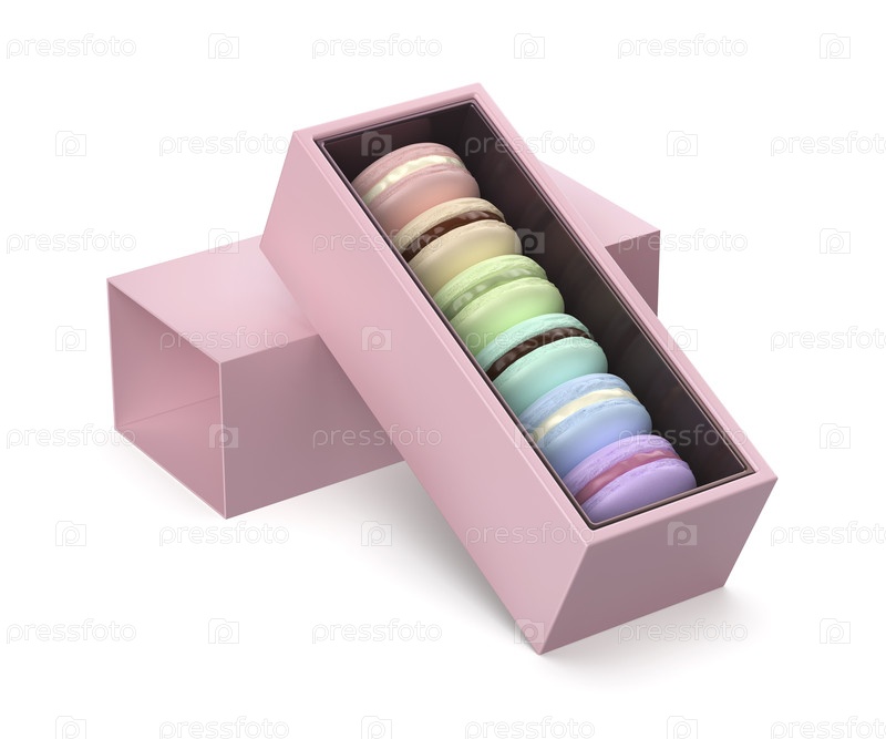 Розовый ящик с шестью различными французскими макаронами