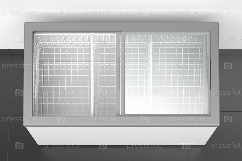 Пустой морозильный холодильник, верхний вид