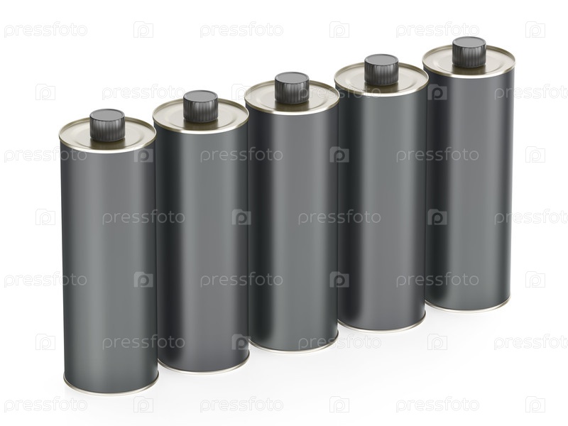 Ряд из пяти круглых оловянных бутылок