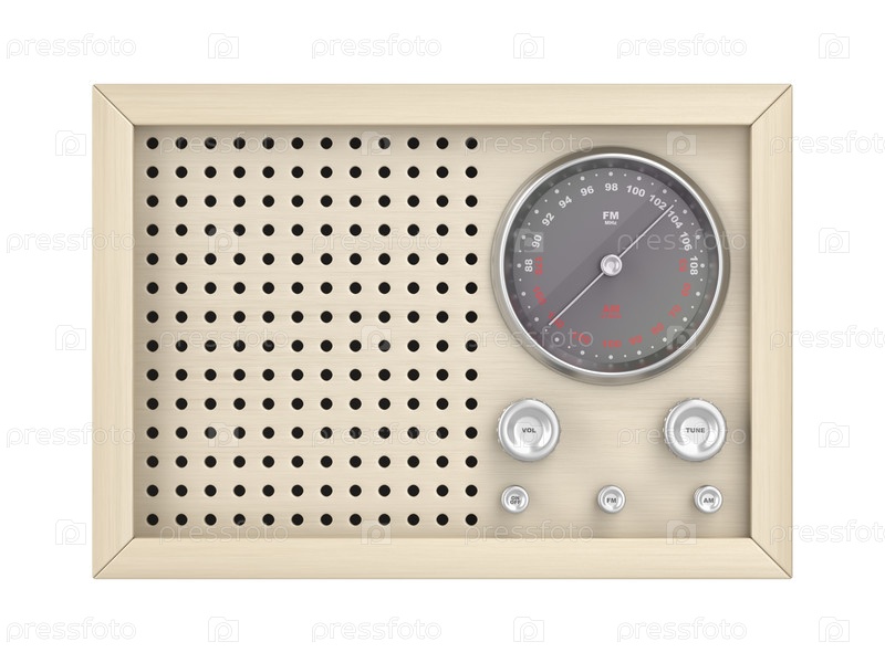 Деревянное ретро-радио на белом фоне