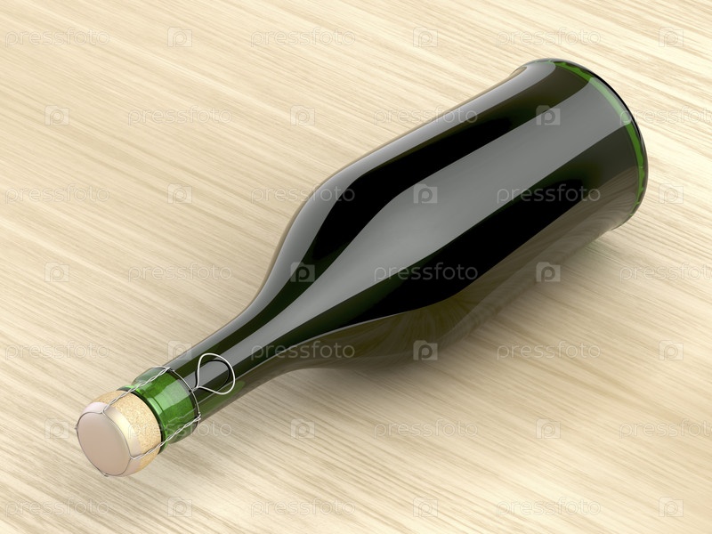 Бутылка шампанского на деревянном столе