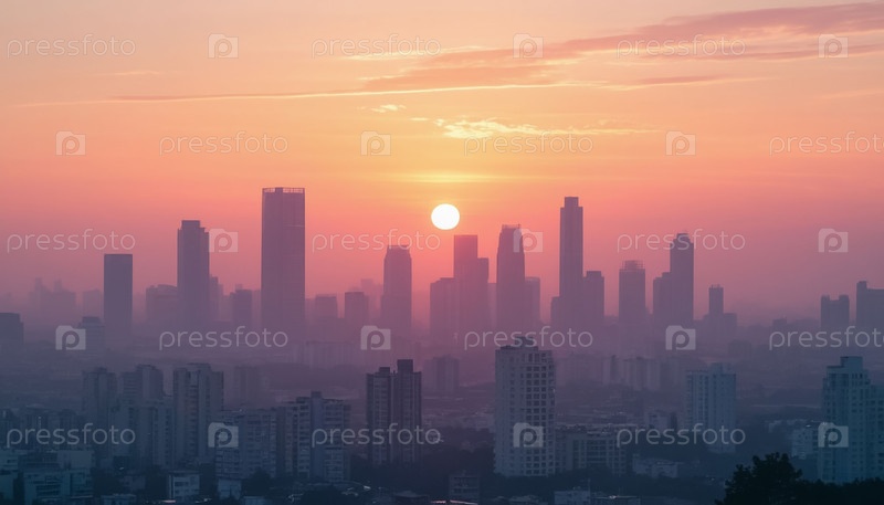 Минималистический городской пейзаж в тумане в пастельных цветах