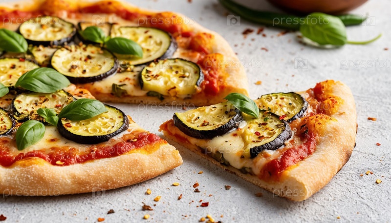 Овощная пицца с баклажанами на белом фоне