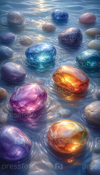 Прозрачные камни радуги под водой