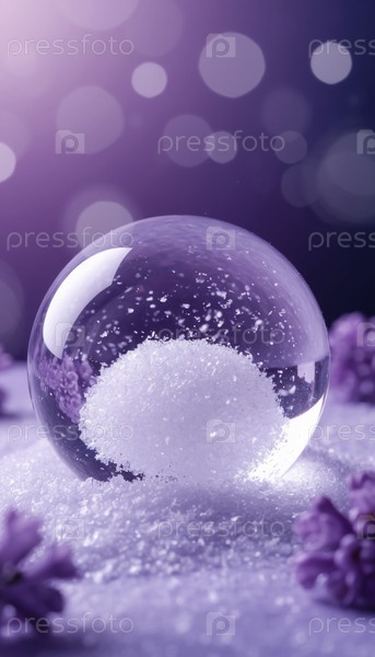 Снежный лиловый рождественский стеклянный мяч