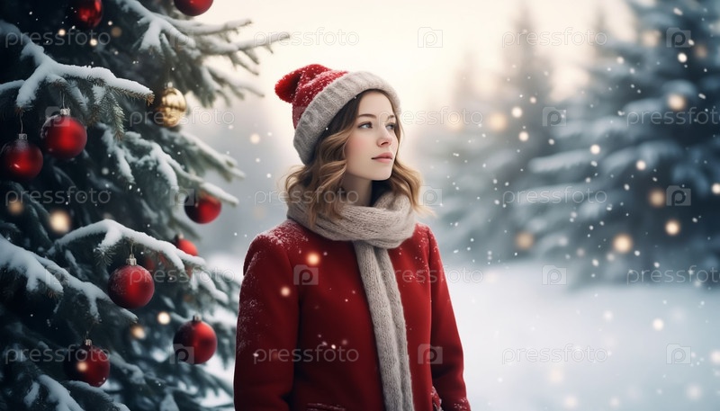 Молодая женщина с рождественской праздничной обстановкой