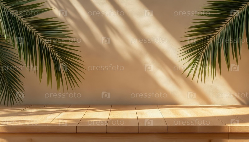 Деревянная сцена с тропической зеленью и боковым размещением мягкое боковое освещение