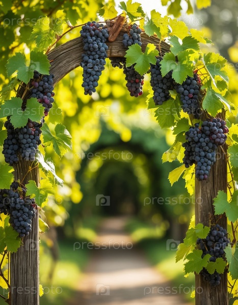 Деревянная арка, переплетенная с виноградными лозами