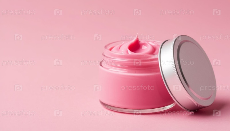Крем розовый в мешке на пастельном фоне.Косметика и красота