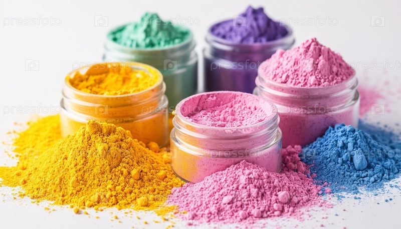 Пастельные порошки в банках на белом фоне