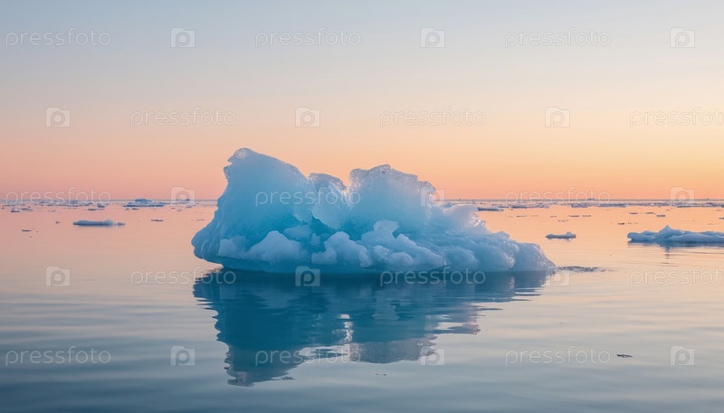Одинокий айсберг в море с отражением пастельных цветов