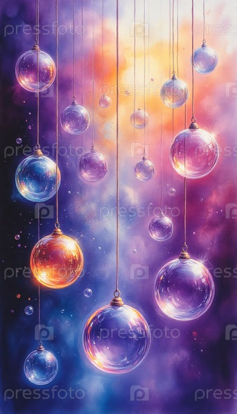 Рождественский радужный бокех с плавающим стеклянным рождественским украшением