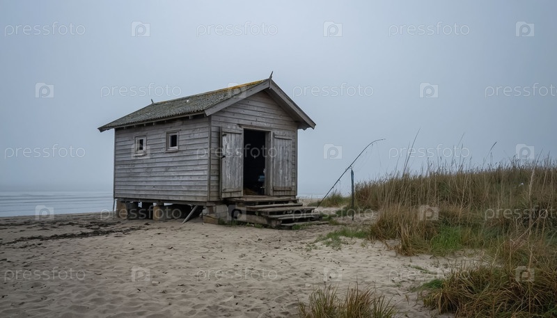 Старый рыбацкий домик на берегу водоема