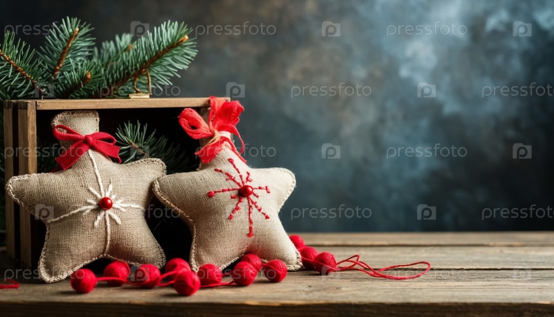 Ручно пошитые ткани Рождественские украшения с вышивкой в деревянной коробке - экологически чистый праздничный декор с рустическим шармом