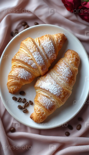 Романтический Валентинский завтрак Flat Lay with Croissants