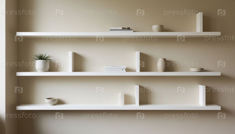 Минималистические полки на кремовой белой стене