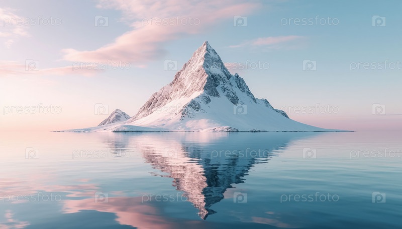 Одинокая белая гора над морем с отражением в пастельных цветах