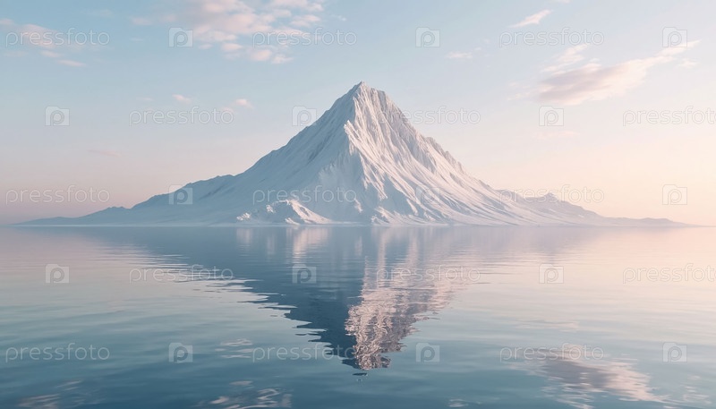 Одинокая белая гора над морем с отражением в пастельных цветах