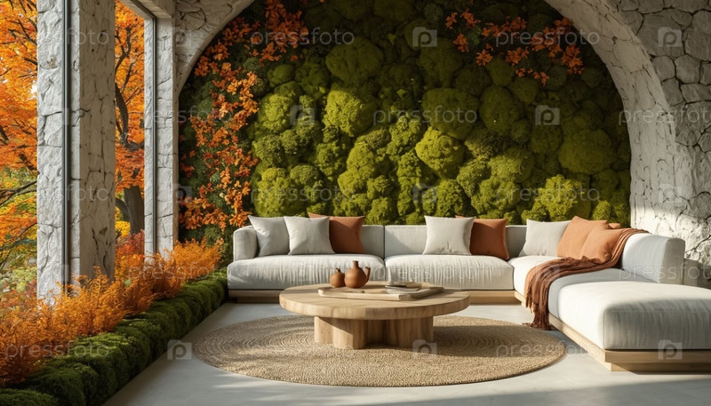 Осенний декор с мраморным и моховым дизайном интерьера