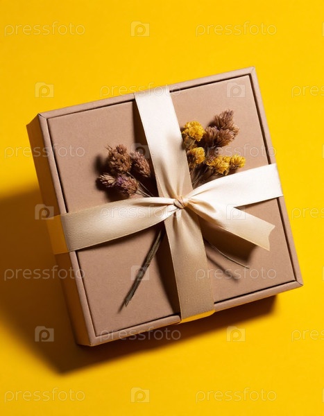 Подарок в коробке Kraft с лентой и сушеными цветами