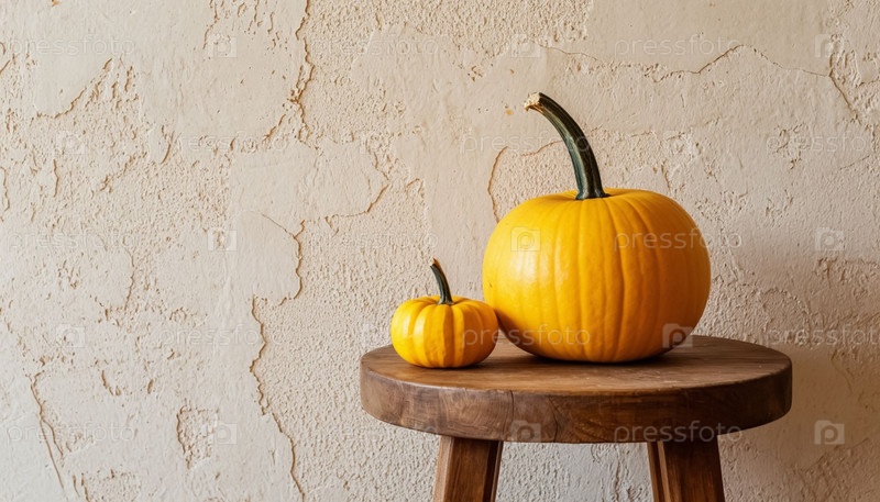 Желтая тыква на бежевой штукатурке