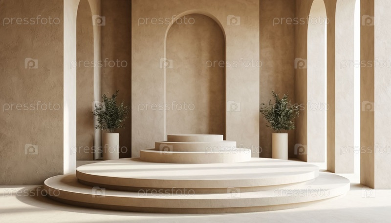 Пустой бежевый интерьер комнаты с подиумом