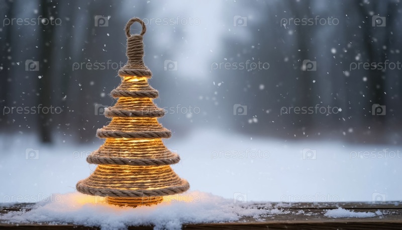 Новогодняя елка из конопляной веревки - экологически чистый декор на снежном фоне