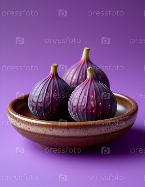 Керамическая тарелка с инжирами на лавандовом фоне