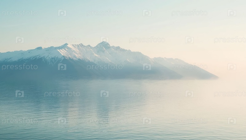 Белые горы над морем в пастельных цветах