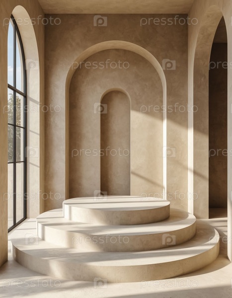 Бежевый минималистский номер с арками и подиумом