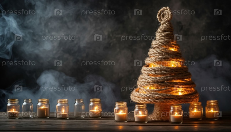 Новогодняя елка из конопляной веревки - экологически чистый декор на темном фоне