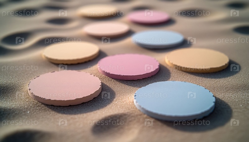 Пастельные картонные круги на песчаной текстуре