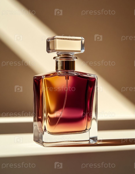 Бутылка с парфюмом Бордо на бежевом фоне