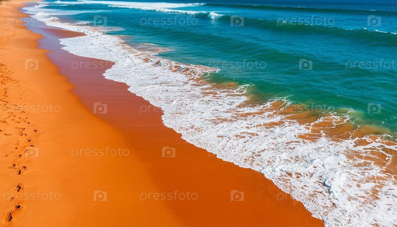 Море, волны и австралийское побережье. вид на морской пейзаж сверху. береговая линия для серфинга