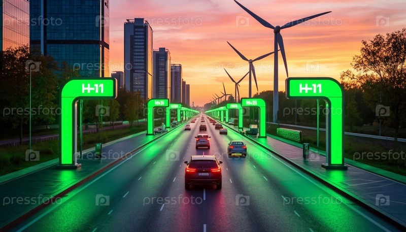 Автомагистрали будущего с водородными грузовиками и автомобилями на топливных элементах, углеродно-отрицательной инфраструктурой