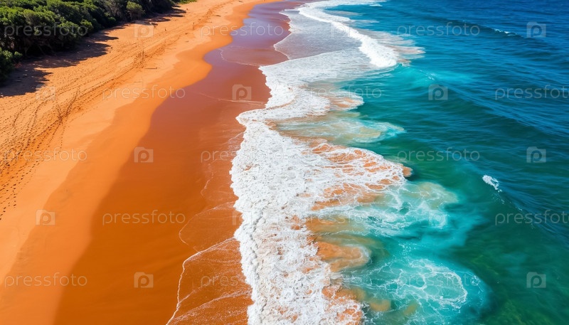 Море, волны и австралийское побережье. вид на морской пейзаж сверху. береговая линия для серфинга