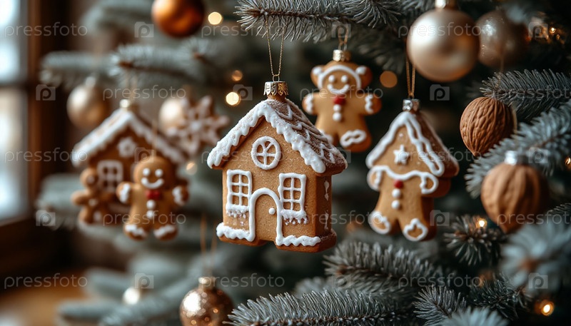 Генерируемые орнаменты с имбирным хлебом на рождественской елке Macro