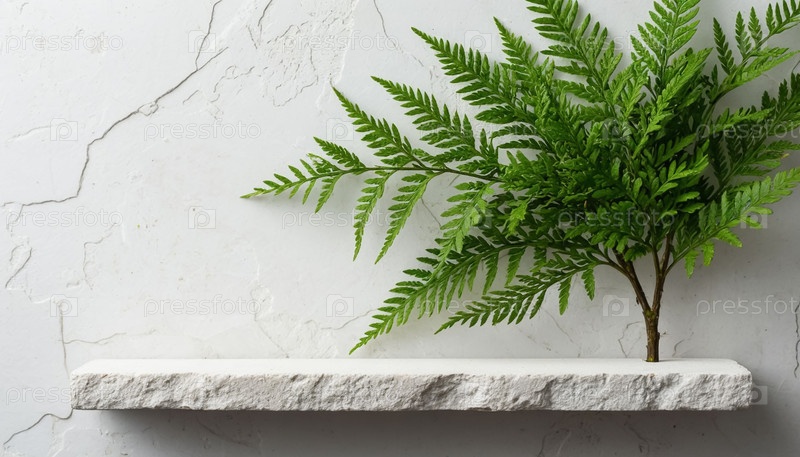 Естественный камень на белом фоне и зелено-белая ветвь