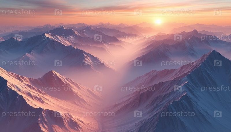 Абстрактные горы мягких пастельных оттенков в тумане