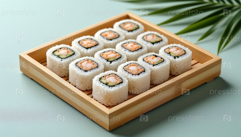 Японские рулоны суши в эко-бамбуковой коробке