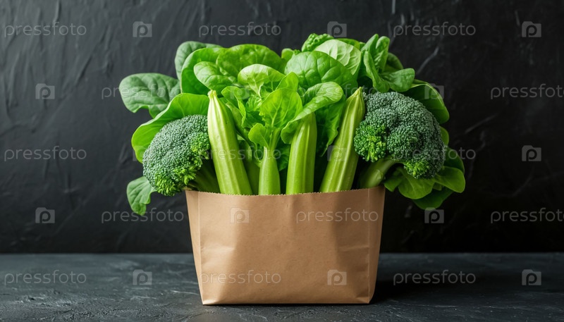 Свежие овощи в крафт-бумаге на черном фоне